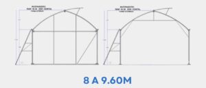 Mayor resistencia a los vientos, diseñado con travesaño en cada forma y columnas cimentadas. Aprovechamiento con un ancho de hasta 9.60m. Sujetado con sistema Polygrap.